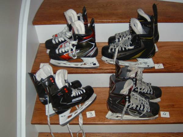 I HAVE 4 HIGH END PAIRS OF HOCKEY SKATES. ALL IN NEW OR EXCELLENT CONDITION (LISTED IN NUMBERED PHOTO ORDER)