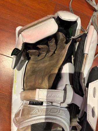 Pads are Bauer Machs size large 35+. Glove - Bauer Hyperlite 2 with a 580 break (senior large) Blocker - Bauer Hyperlite 2 (senior large) Used ONE season. Pick up Avenue Rd and Eglinton Ave.