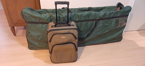 Large 142 cm long bag, made8 with water-resistant Cordura fabric. And with removable cardboard inside. Dimensions 56" x 27" x 7". Asking $30. I made the picture of my Carry-On suitcase for size...