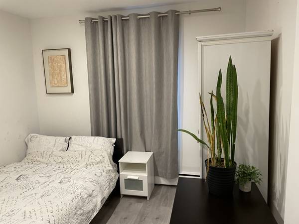 Newly renovated with new hardwood floors, new washrooms, newly painted, newly furnished with quality mattress, blackout drapes, security and uber clean.