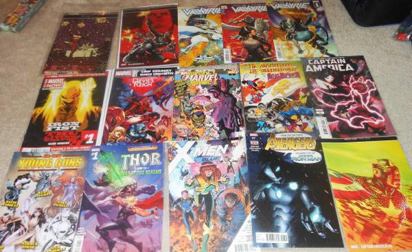 Lot D 15 Comics Mixed Lot Valkyrie # 1, 2,3 Season's Beatings # 1 Killmonger # 2 Iron Fist # 1 Captain America # 5, 6 Excalibur: Mojo Mayhem History of the Marvel Universe # 1 Devil's Reign # 1 X-Men Blue # 1 Avengers # 7 T+ Thor: Road to War of the Realms # 1 Young Guns # 1 Sampler (2014) $20 for this lot