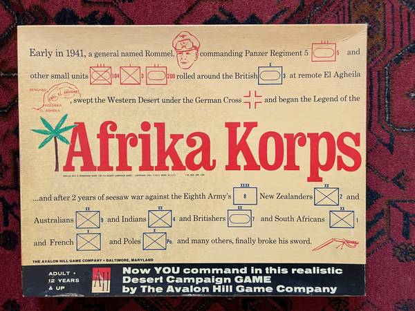 AFRIKA KORPS : WWII Desert Campaign Game - Avalon Hill 2nd Edition 1975. Used but with complete pieces and books. See other items.