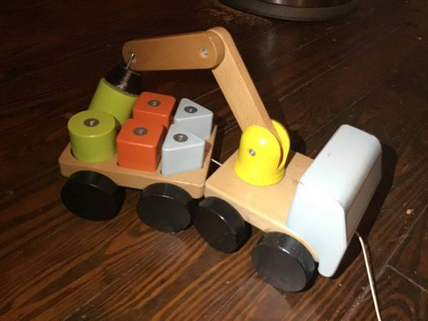 IKEA Mula Crane with Trailer, Wood COMPLETE $5 pickup ONLY