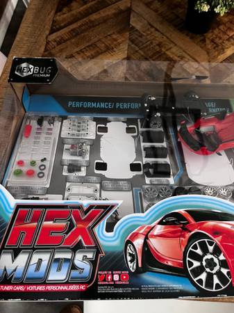Selling a Hex Mods Pro Series Elite Raceway customizable RC car set! It comes with everything you need to build your own RC car, including: - Customizable body parts - Wheels - Decals - Remote...