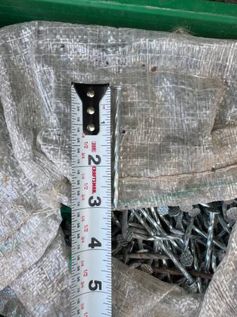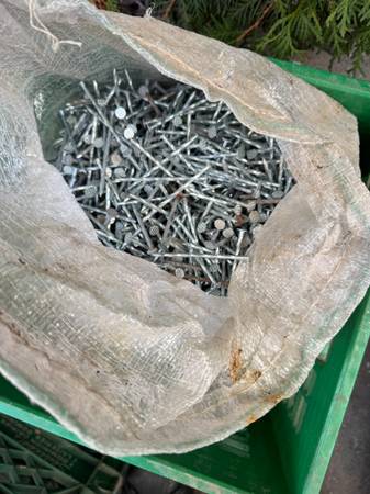 Three inch nails that are in excellent condition. They are 3" galvanized framing nails. The nails are spiralized. They fill 2 milk crates but are in poor quality bags. Milk crates are 10$ each or...