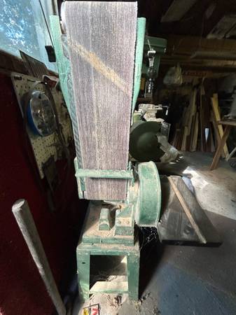 110v electric sander. Good condition. 48 inch belt. 9 inch disc.
