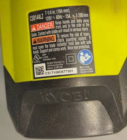 Ryobi CSB144LZ 7-1/4″ circular saw, 15-amp corded model.
