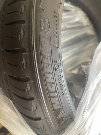 A pair of Michelin tires 235/40R-19. The MICHELIN Primacy MxM4 all-season tire provide increased traction at low temperatures, designed for a quiet, comfortable ride, responsive handling and enhanced fuel efficiency with year-round all-season traction.