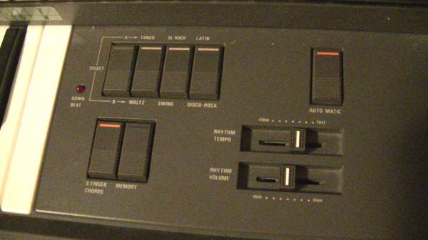 Excellent electro-organ. Lots of rhythms. Excellent sound. Folding legs. Not in use. No damage. No scratch. Smoking-free home. No pets.