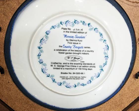 Morning Sunshine Collector Plate Country Bouquets by Glenna Kurz 1991 Flowers. Plate measures about 8 1/2" in diameter