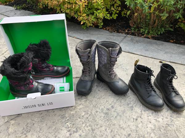 Clean, well maintained. All boots for $60 OR - New-Like condition. The North Face winter boots for girls (US size 5). - $45 - Dr. AirWair Martens black boots (3US/34EUR). - $25 - Cougar winter boots...