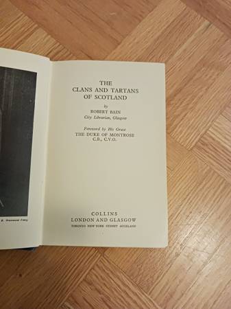 I have a good condition vintage hardcover book called THE CLANS AND TARTANS OF SCOTLAND by Robert Bain pub by Collins London and Glascow
