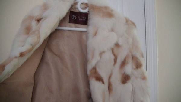 New natural white rabbit jacket. Not used. Smocking-free home. No pets.