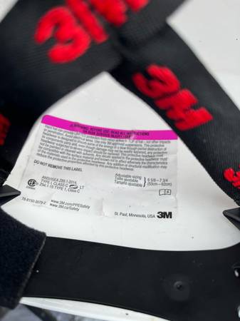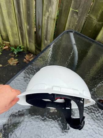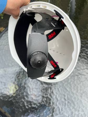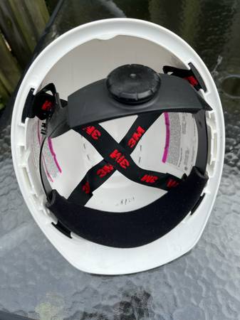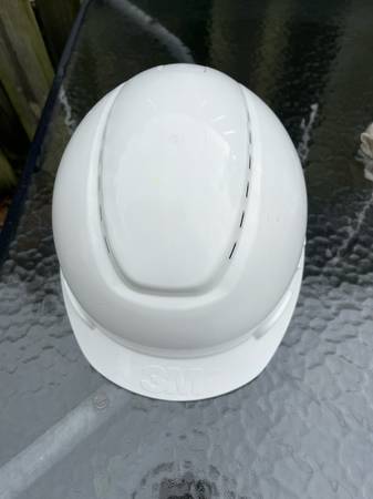 Selling a white 3M hard hat. The size is adjustable from 6 5/8 to 7 3/4 (53cm - 62cm). It's in great condition and ready for use on the job site