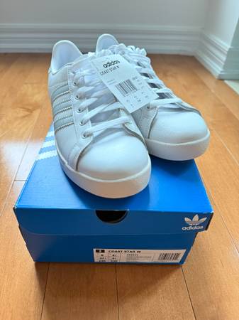 NEW (never worn) Adidas COAST STAR SHOES (US size: 6) in white and silver - $80