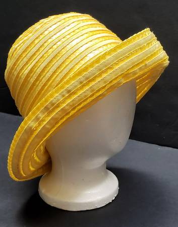 Women’s & girls’ spring & summer bucket hats & turban 1. Green with black ribbon – size small to medium (made in Italy) 2. Yellow with yellow ribbon – size small (inner circumference is...