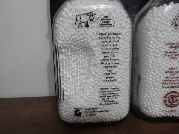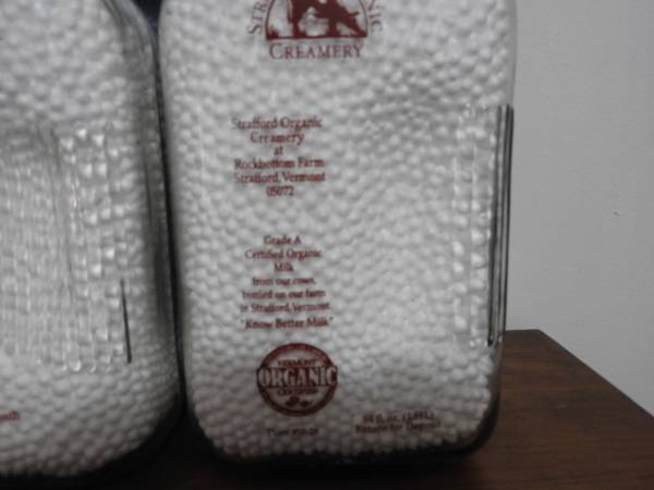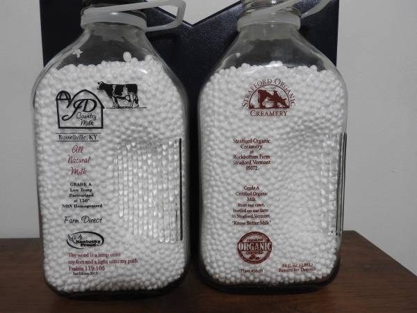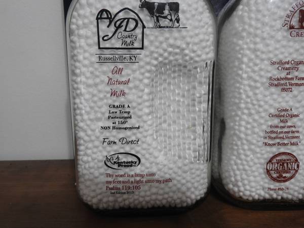 - 1 JD Country with original lid - 1 Stafford Organic Creamery with vintage Becker's lid - excellent condition - nice display pieces - $5.00 each See my other ads