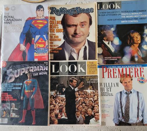 2 1985 MOVIE EXPRESS MAGAZINES OF PHIL COLLINS AND BRUCE SPRINGSTEEN.