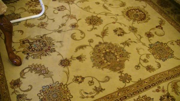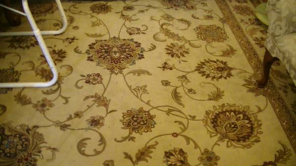 Beautiful machine-made large, thick, high-density wool area rug. No damage. Well washed. Smoke-free home. No pets. Negotiable.