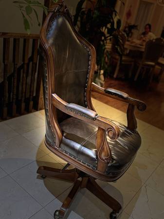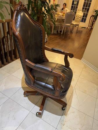 Beautiful Accent Genuine leather office chairs, very good condition, from smoke and pet free home. with carving on wood. only $ 90 First come, first get it!