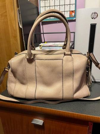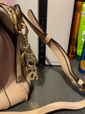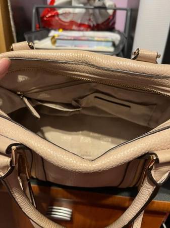 This purse has been used. There are no scratches or tears. It is 14 X 8 inches There is a Michael Kors key chain on it too.