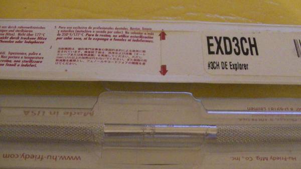Explorer, double-ended, #3CH, cow-horn, #31 round handle, 2 packs, EXD3CH. $20/pack. Attention to all dentistry students, doctors, and technicians: The new Titanium Dentistry tools made in the USA...
