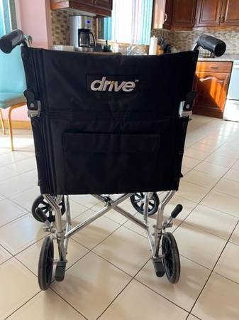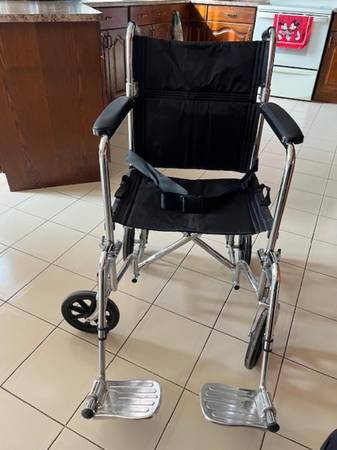 This wheel chair is brand new. It is great for transferring and folds up neatly. Wheels are strong