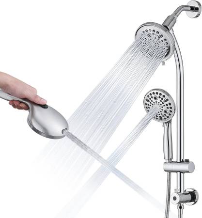 Premium Material -High-quality ABS plastic body brushed nickel dual shower combo, with a 5ft 304 stainless steel hose offers superior rain spray