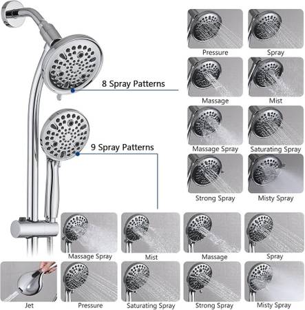 Multiple Bathing Experiences - This shower head combo is equipped with 82 selectable shower modes( Rain, Massage, Misty, Jet, and Multiple combination modes)