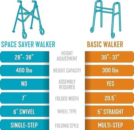 • The Wonder Walker is the world's most compact folding walker; the patented EZ Fold-N-Go technology allows it to fold 4 times smaller than the average walker into a 5 x 7 inch footprint to help save space while on the go