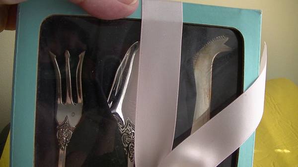 New beautiful silver-plated cheese serving set of 3. Excellent gift!