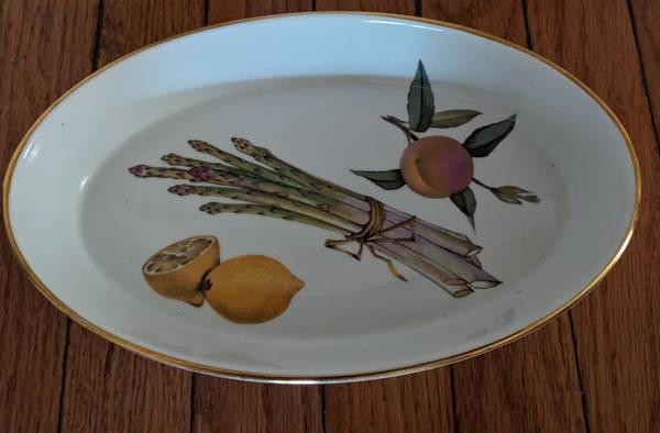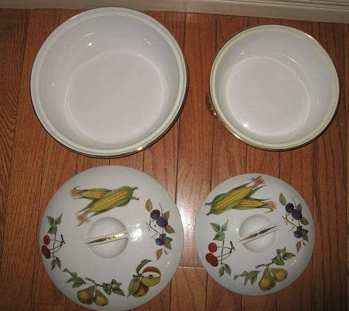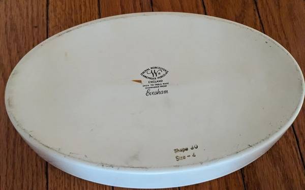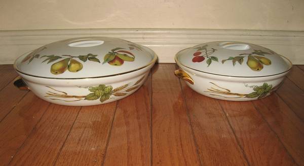 The Royal Worcester Evesham Gold 5 Piece Casserole Baking Serving Set is a classic and timeless piece of English pottery, featuring a beautiful Evesham Gold pattern with a garden-themed vegetable and fruit motif.