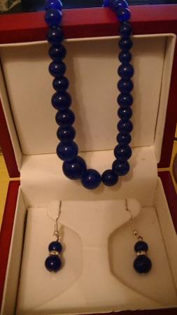 New deep blue jade necklace and earrings. 925 stamp. Never worn.