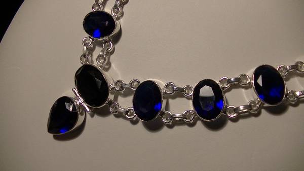 Beautiful necklace made of 925 silver faceted sapphire. Sterling silver chain. New. Not used.