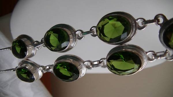 Brand new silver necklaces with Peridot stones. 925 stamp on the place. Adjustable length. 6-stone necklace: $300 8-stone necklace: $400 8-stone necklace: $500 (bigger stones)