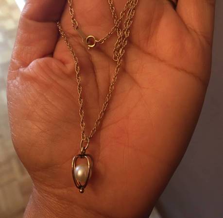 14k Yellow Gold Necklace with Natural Akoya Pearl Excellent Condition and clear 14K Gold Stamp Absolutely Beautiful Design if interested please call or send an email