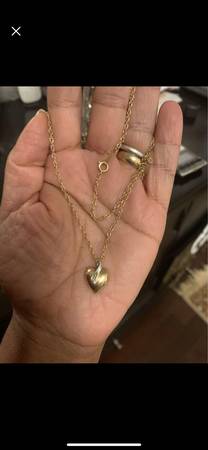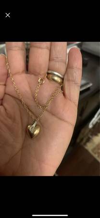 14K Yellow Gold Necklace with Solid Heart Pendant that has Diamonds on it Excellent Condition and Beautiful Design. If interested please call or send an email.