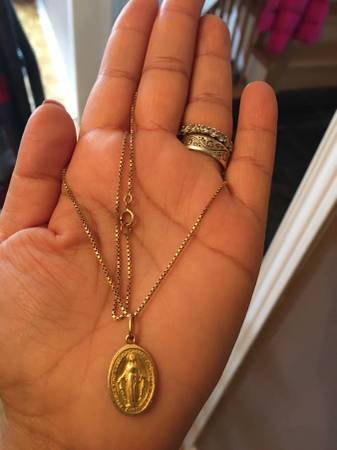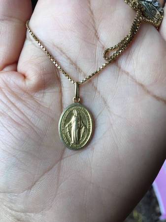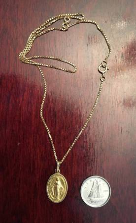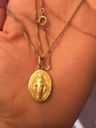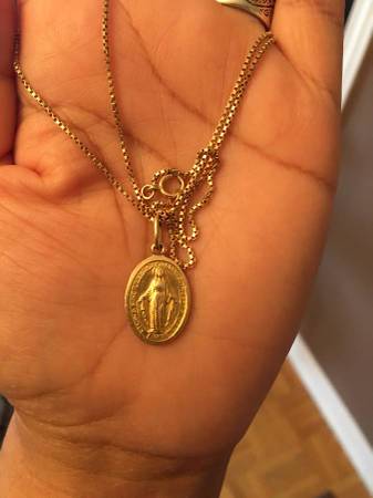 18K Italian SOLID Yellow Gold Necklace with Virgin Mary (Madona)...
