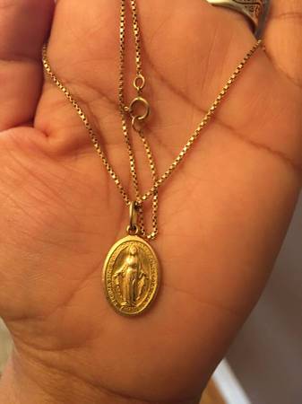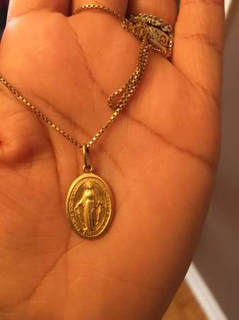 18K Italian SOLID Yellow Gold Necklace with Virgin Mary (Madona) Pendant Excellent Condition and looks like Brand New Have Decent weight on it and Clear 18K Gold Stamp Best Gold Quality Ever If...