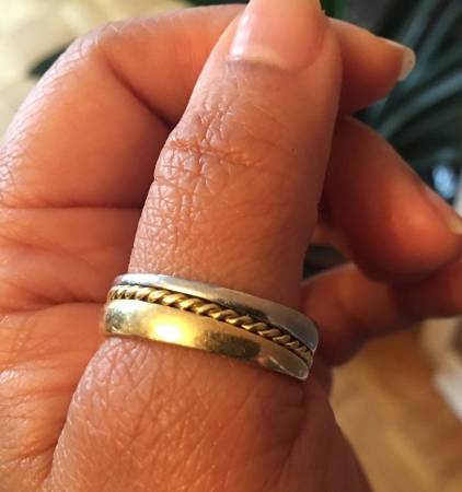 18K Italian Yellow and White Gold Wide and Heavy Band (Size 9-10) -...