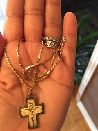 Brand New 14K Gold Cross Necklace with sooooo elegant Design. Beautiful and Elegant Design and very valuable piece of Jewelry If interested please call or send an email