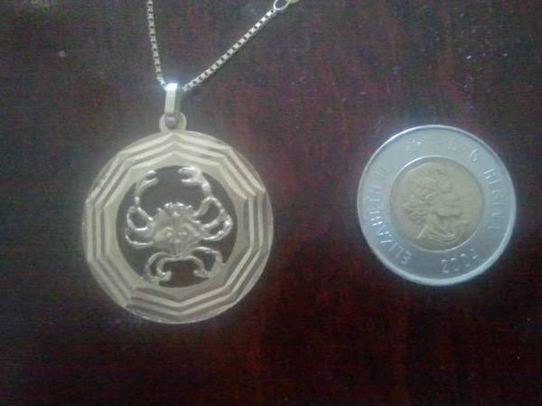 Brand New Yellow gold Cancer Horoscope Necklace (June 22 to July 22) Chain included Brand New if interested please call or send an e-mail