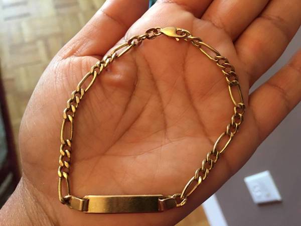 8 inches Yellow Gold Identity Bracelet from Italy Excellent Condition and absolutely Beautiful if interested please call or send an email