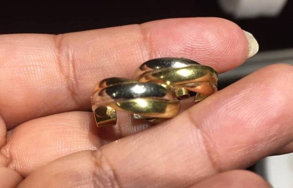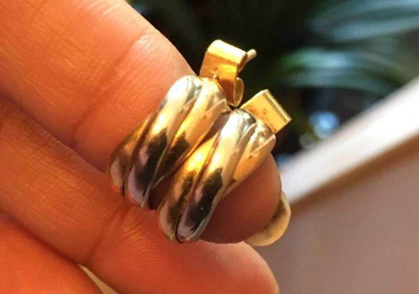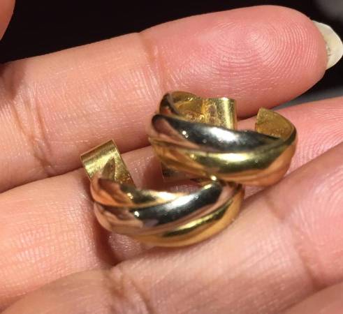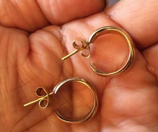 Solid and Heavy 14K Hoop Earrings with Studs on the back Very Elegant Design with clear 14K Gold Stamp Solid inside not just empty if interested please call or send an email