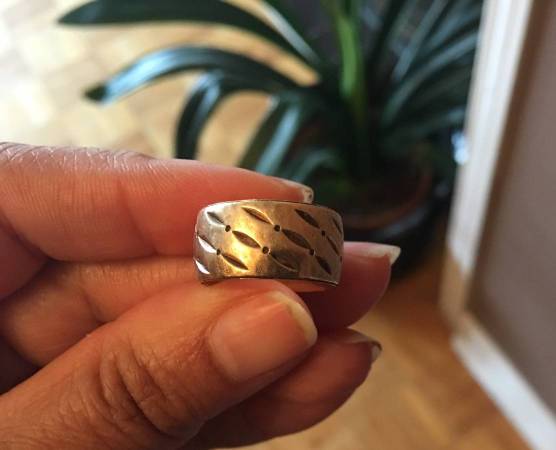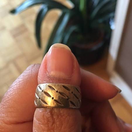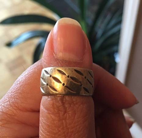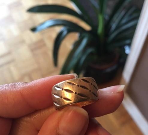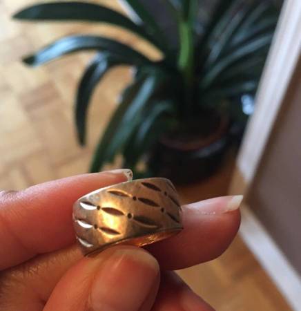 Solid and Heavy Yellow Gold Wide Band (Size 5-6) with elegant Design Please note: Design is all around the Band Excellent Condition and absolutely Beautiful and Elegant if interested please call or...