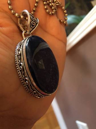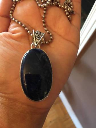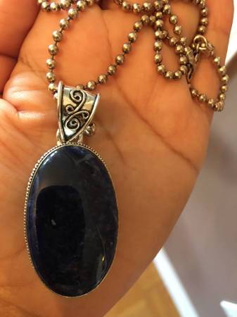 Sterling Silver Necklace with Big and Amazing Lapis Lazuli Stone. -...