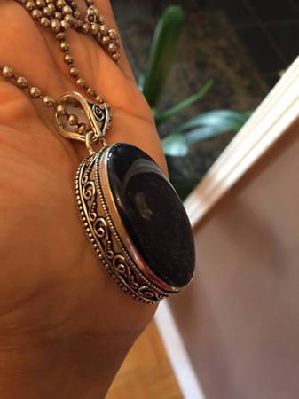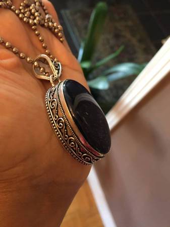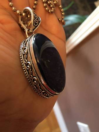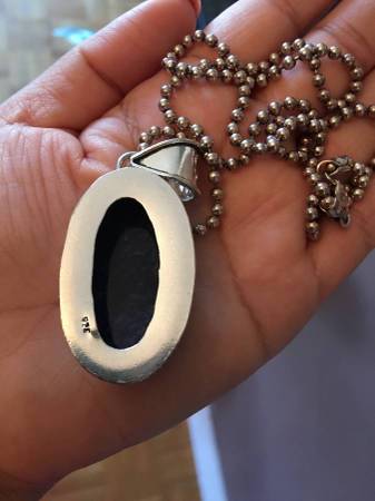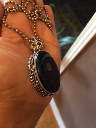 Sterling Silver Necklace with Big and Amazing Lapis Lazuli Stone. The frame Silver of the stone have an amazing Design. Excellent Condition and absolutely Beautiful with Silver Stamp everywhere. if...