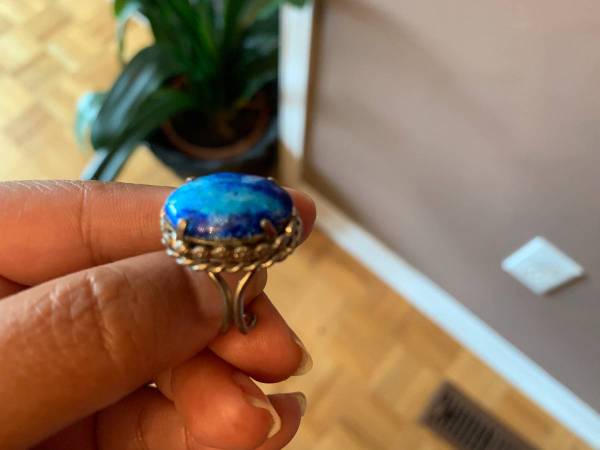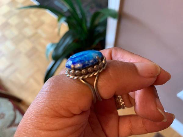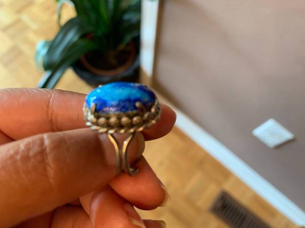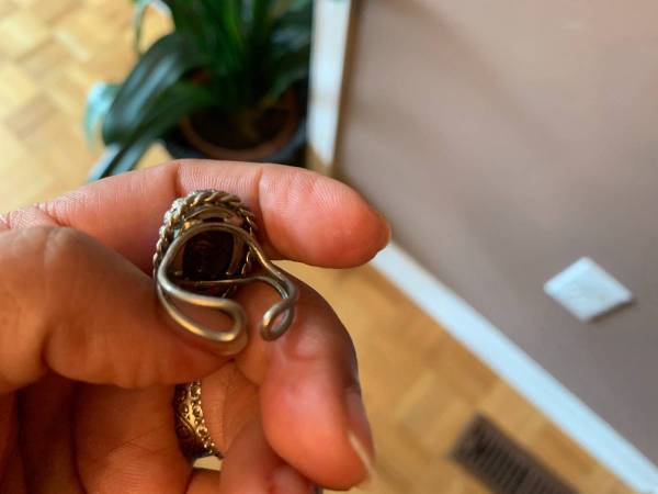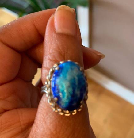 Sterling Silver Ring with such beautiful Stone and Design Design Excellent Condition and unique Style Fits Different Sizes as it is open from the bottom if interested please call or send an email