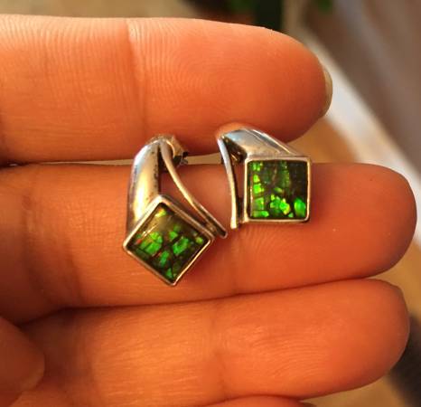 Sterling Silver Studs Earrings with Green Beautiful Stones Brand New Studs and very Elegant with clear 925 Stamps Simply Beautiful Please call or send an email if you are interested