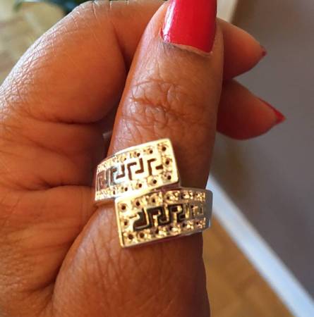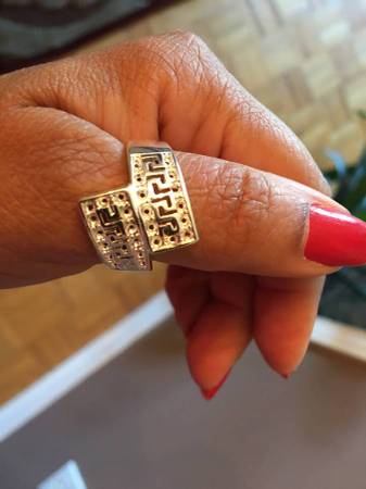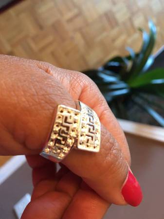 Sterling Silver Wide Ring (Size 7-8) Versace Style Excellent Condition and clear Silver Stamp if interested please call or send an email